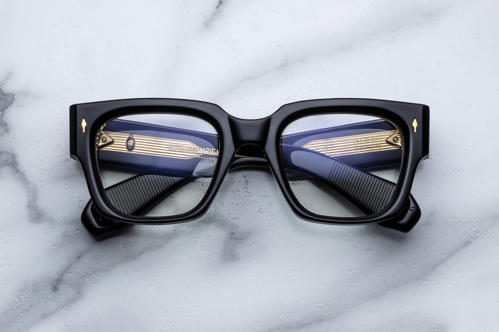 - Icons of JMM, these bold, sophisticated, unisex glasses feature our signature 7-barrel hinge and precious metal details..
