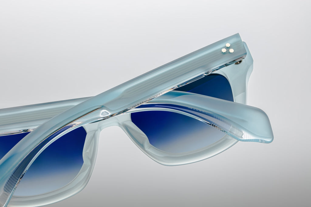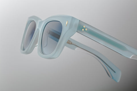 MATERIAL: LIGHT BLUE 10MM CURED CELLULOSE ACETATE FRAME CUSTOM DOUBLE LAMINATED ACETATE TEMPLES