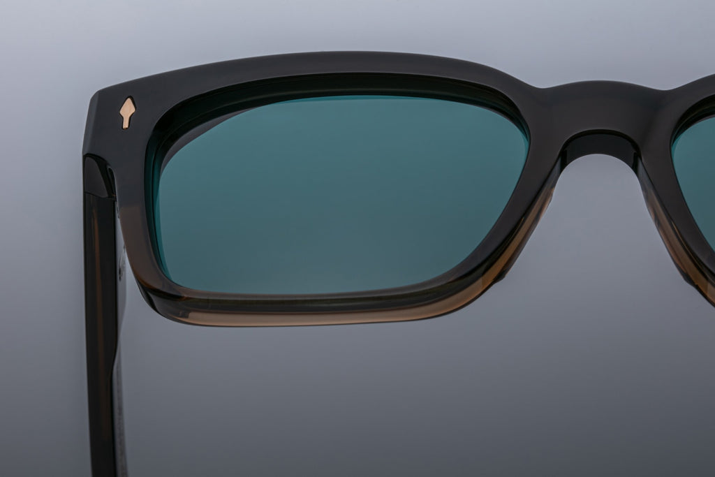MATERIAL: 10MM BLOCK, POLISHED BRONZE CURED CELLULOSE ACETATE FRAME, CUSTOM DOUBLE LAMINATED ACETATE TEMPLES FT. PRECIOUS METAL HARDWARE