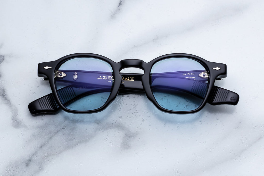 HARDWARE: 10MM BLACK CURED CELLULOSE ACETATE FRAME - LENS: BLUE LENSES CR39 - HANDCRAFTED IN JAPAN